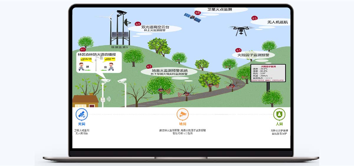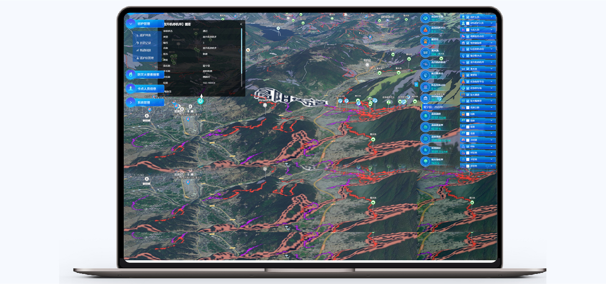 系统通过整合森林防灭火软硬件资源信息,组建成高效实用的森林防灭火指挥信息系统,为森林防灭火的日常管理提供服务。系统能够实现对森林火灾和人员设备的快速定位,及时获取详实的火场情况。通过实时视频监控点对周边林区进行24小时监控,并对火情进行自动识别和报警,确保森林资源安全。可在线定制定扑火方案,制作火灾扑救指挥态势图,计算扑火队员抵达火场的最佳路径,缩短扑救时间,提高扑火效率,把森林火灾造成的损失降到最低限度。