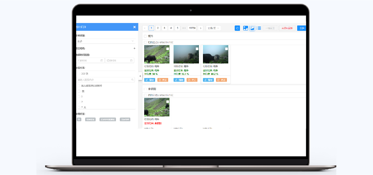 对红外相机拍摄到的海量照片,通过人工智能(AI)技术进行识别分类,减少人工筛选时间,提高工作效率。并可在反复的识别筛选中不断的通过机器学习提升识别准确度。