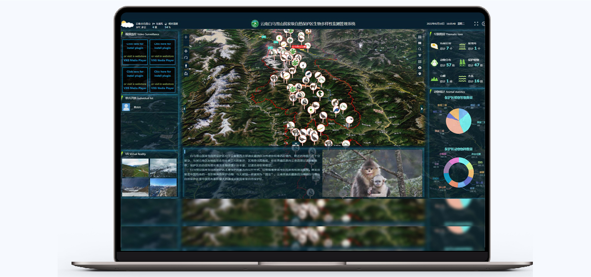 系统利用互联网感知设施、大数据获取和分析、数据可视化和人工智能、5G毫米波等等新一代信息技术,构建天空地一体化的数据采集、监测、传输、分析处理、显示、共享的综合监测管理系统。突破生态监测信息获取时间长、数据传输慢、位置信息精度低、可视化程度差等技术难点,实现生态监测数据高时效获取、高带宽传输,高精度监测,直观模拟与科学决策。